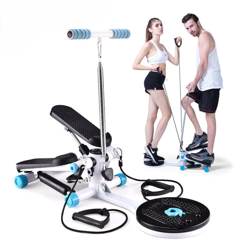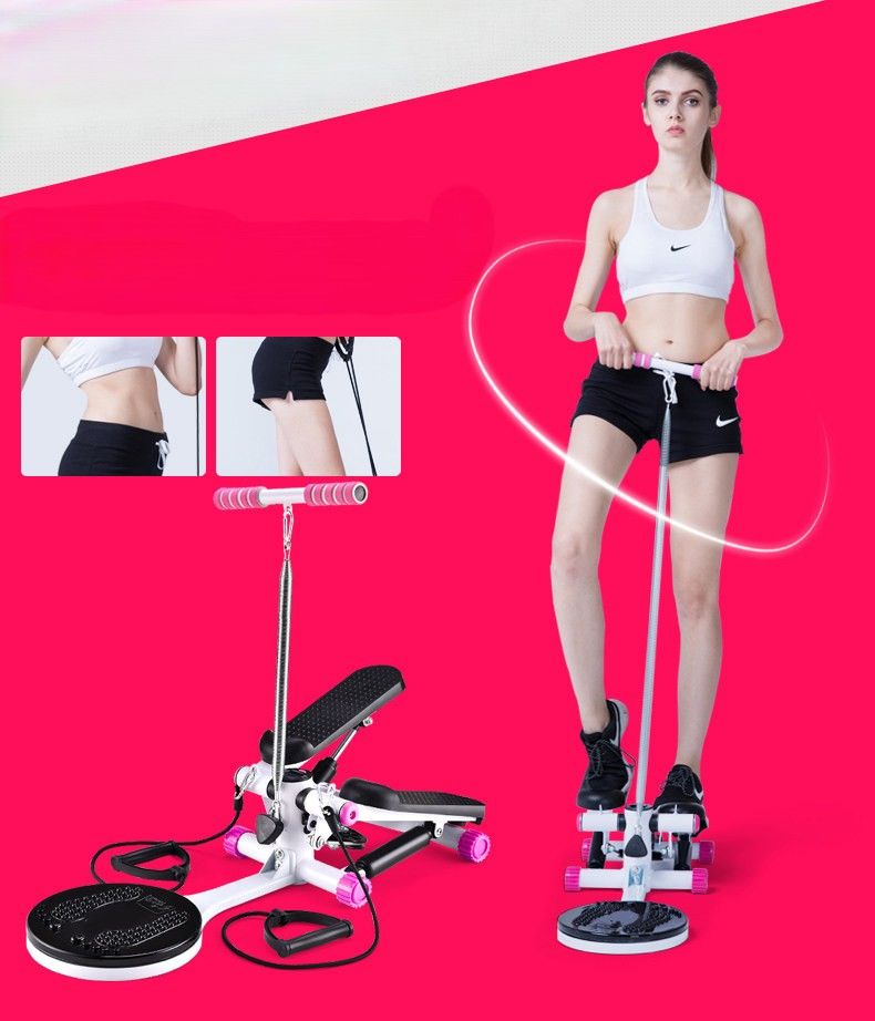 自宅で手軽に有酸素運動ができる多機能型ステッパーです。 足踏み運動に加えてツイスト機能を搭載し、下半身と腰回りを同時に鍛えられます。 高さ調整可能なハンドルとトレーニング用ゴムバンドが付属し、上半身の筋力強化にも対応します。 滑り止め加工されたペダルで安全性も確保され、運動時の安定感を高めます。 省スペース設計で室内でのトレーニングに最適な健康器具です。